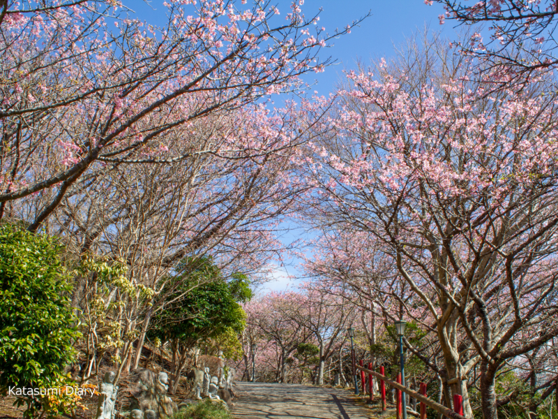 また、たくさんのお地蔵様が祀られておりますエリアでも河津桜は見頃の開花状況となっております。