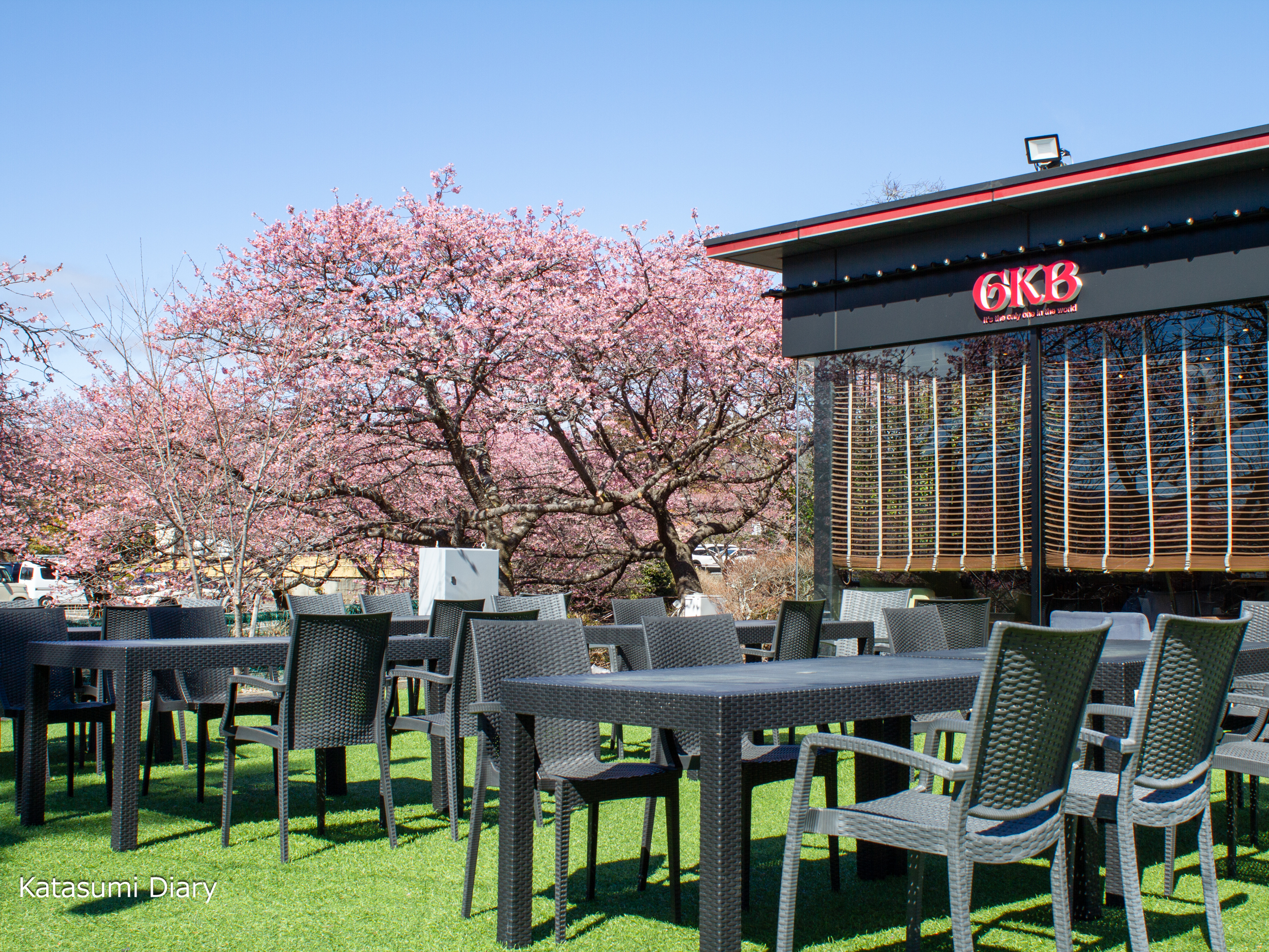 ショップのテラスからも河津桜を楽しむことができ、優雅なひと時を過ごすことができるようになっております。