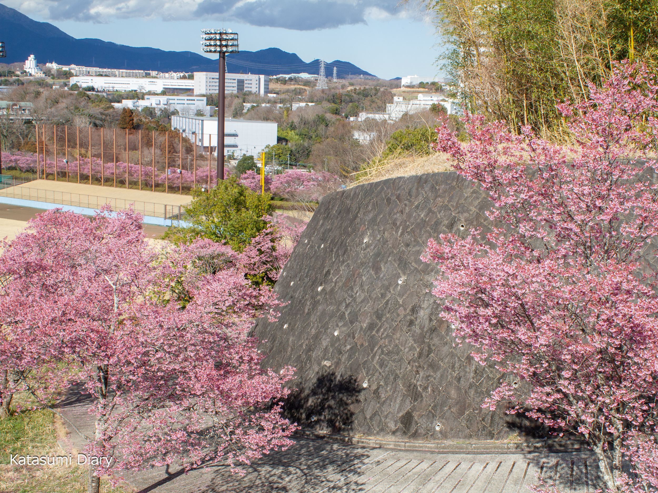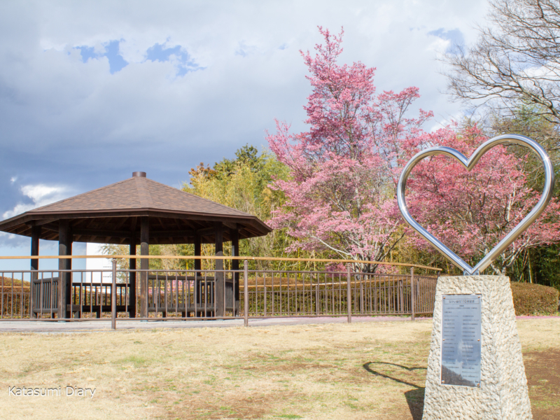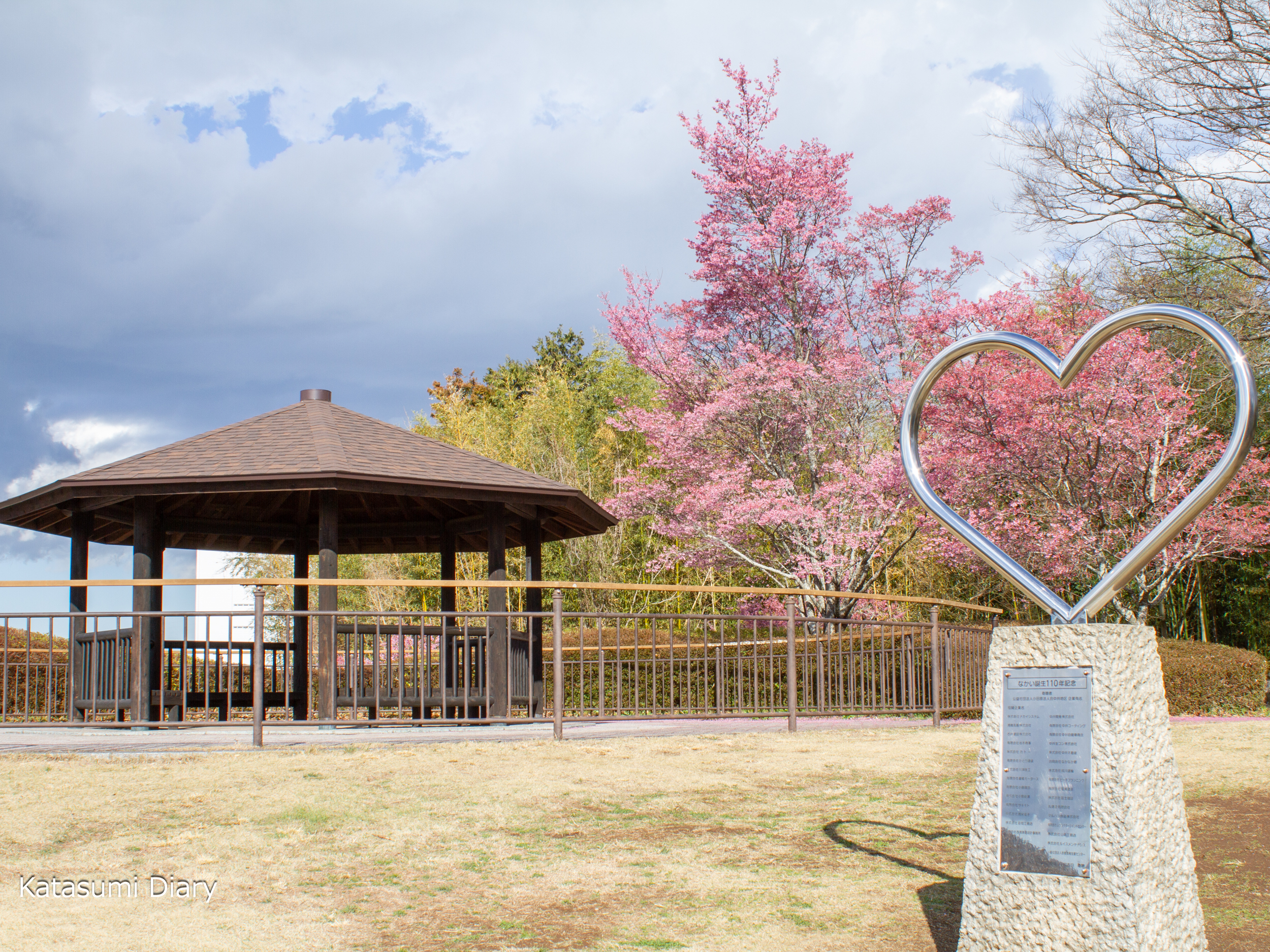 【花だより】2026年3月4日現在 オカメ桜の開花状況 ハートと富士山の絶景公園 中井中央公園 アクセスと駐車場 神奈川県中井町