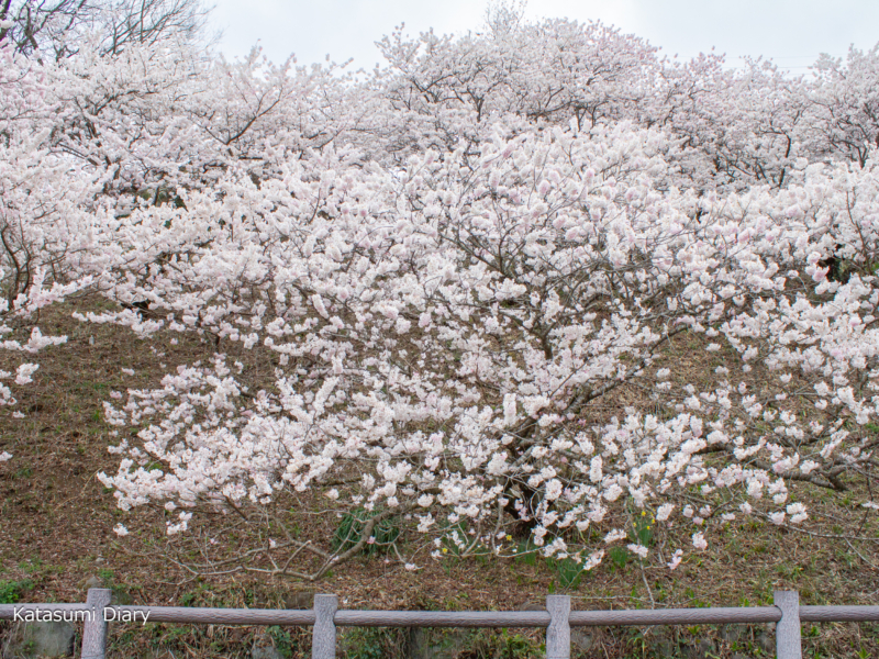 非常に迫力のございます春めき桜の名所でございますが、西日の当たる時間帯には陰ってしまいますので、良く晴れた日の午前中に訪れたいところかと思われます。