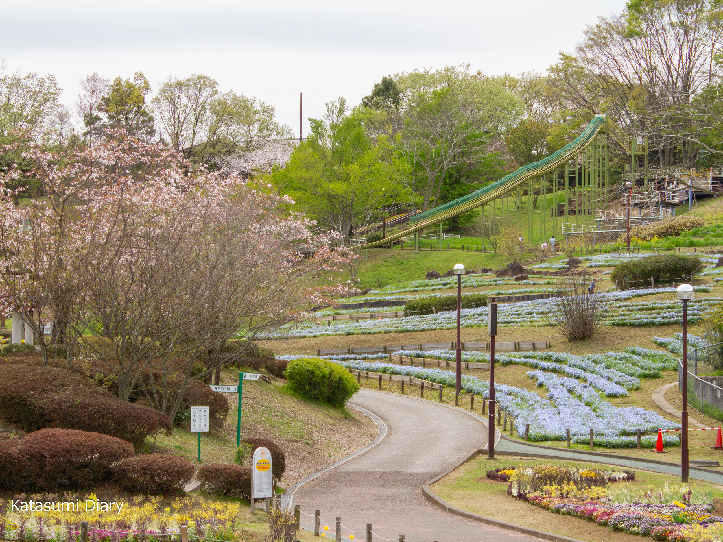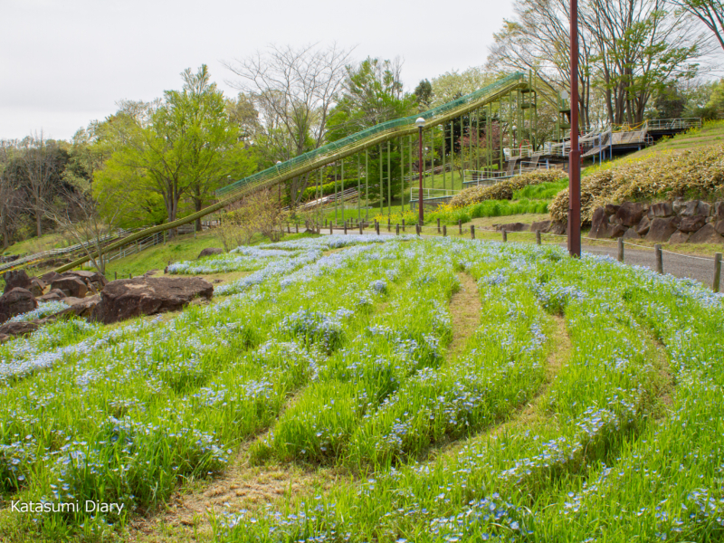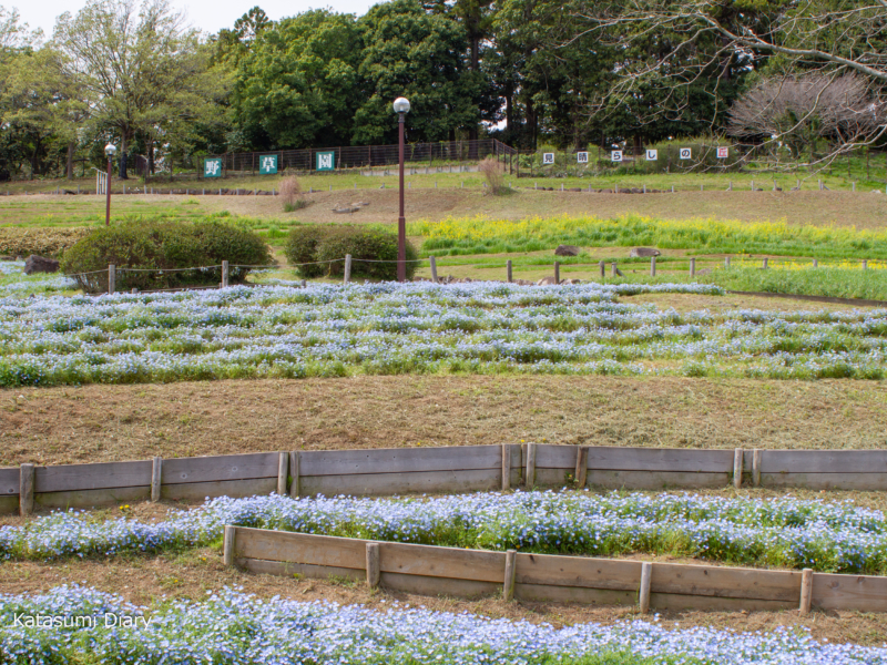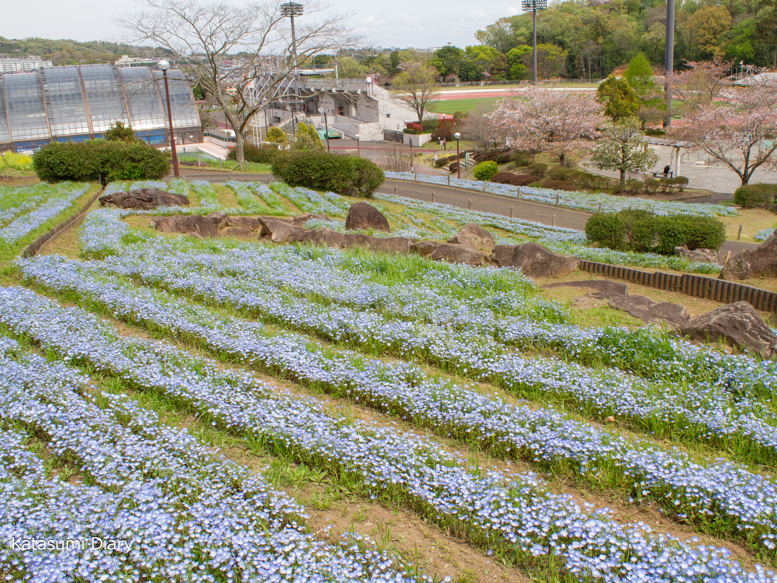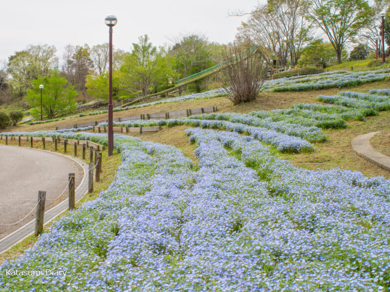 今回のカタスミ日記は、2026年4月9日に荻野運動公園を訪れてみましたので、写真を交えながら、ネモフィラの開花状況をお届けしてまいりたいと思います。
