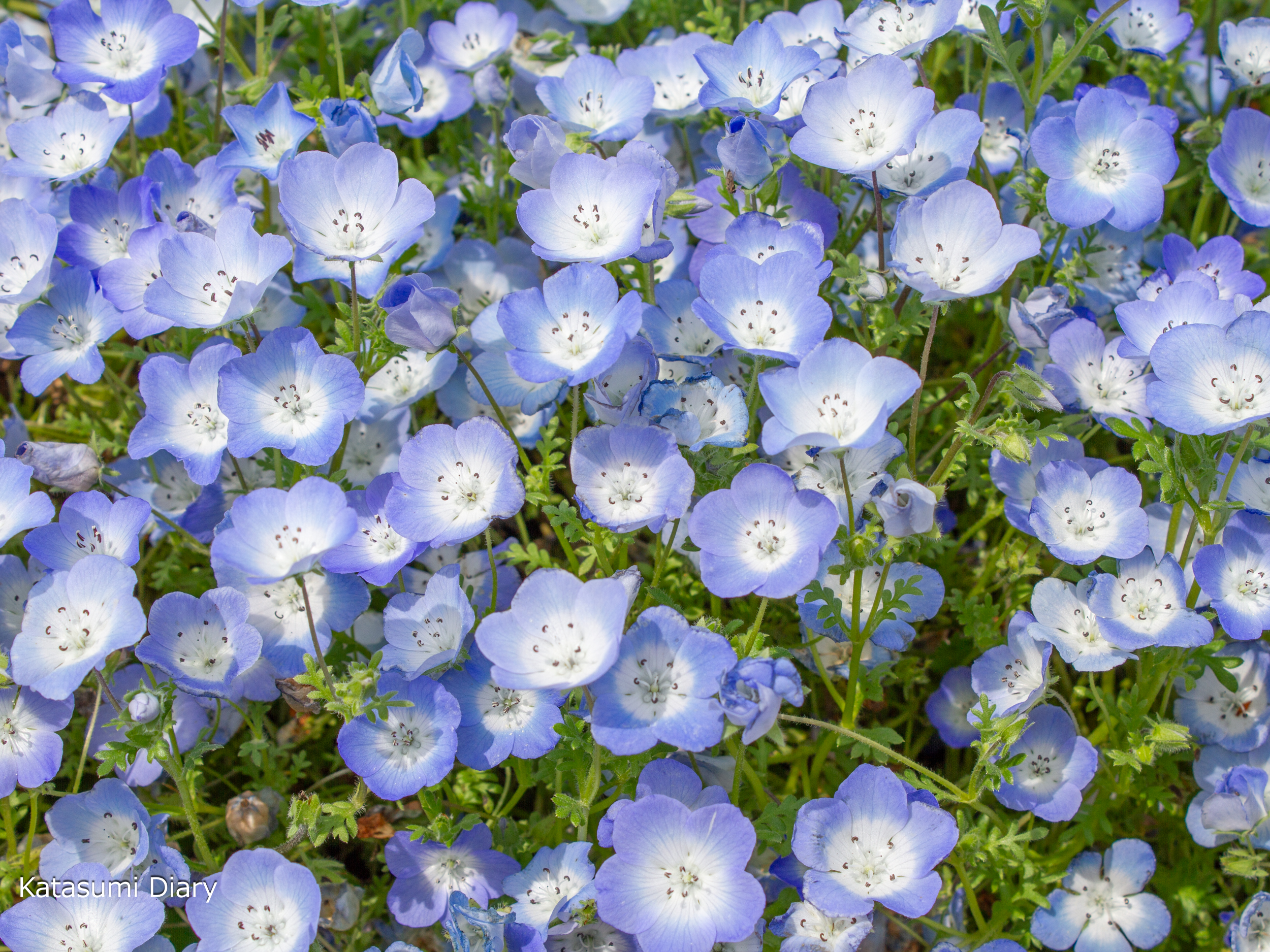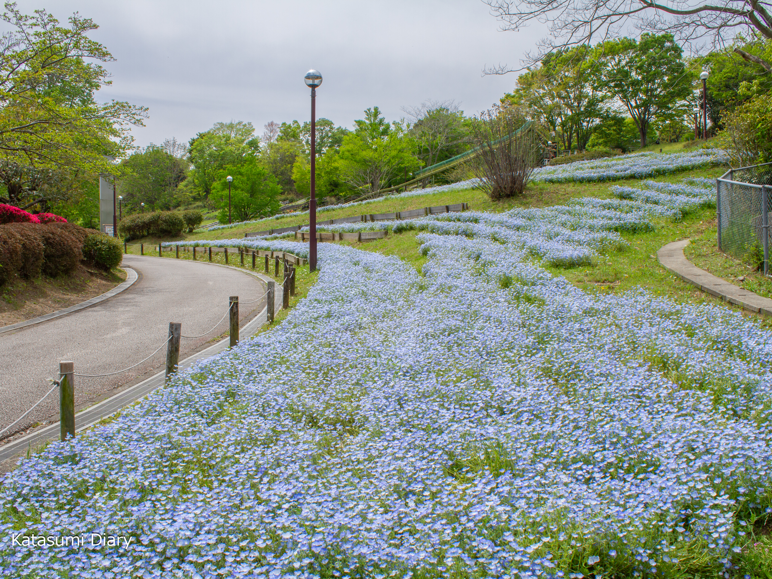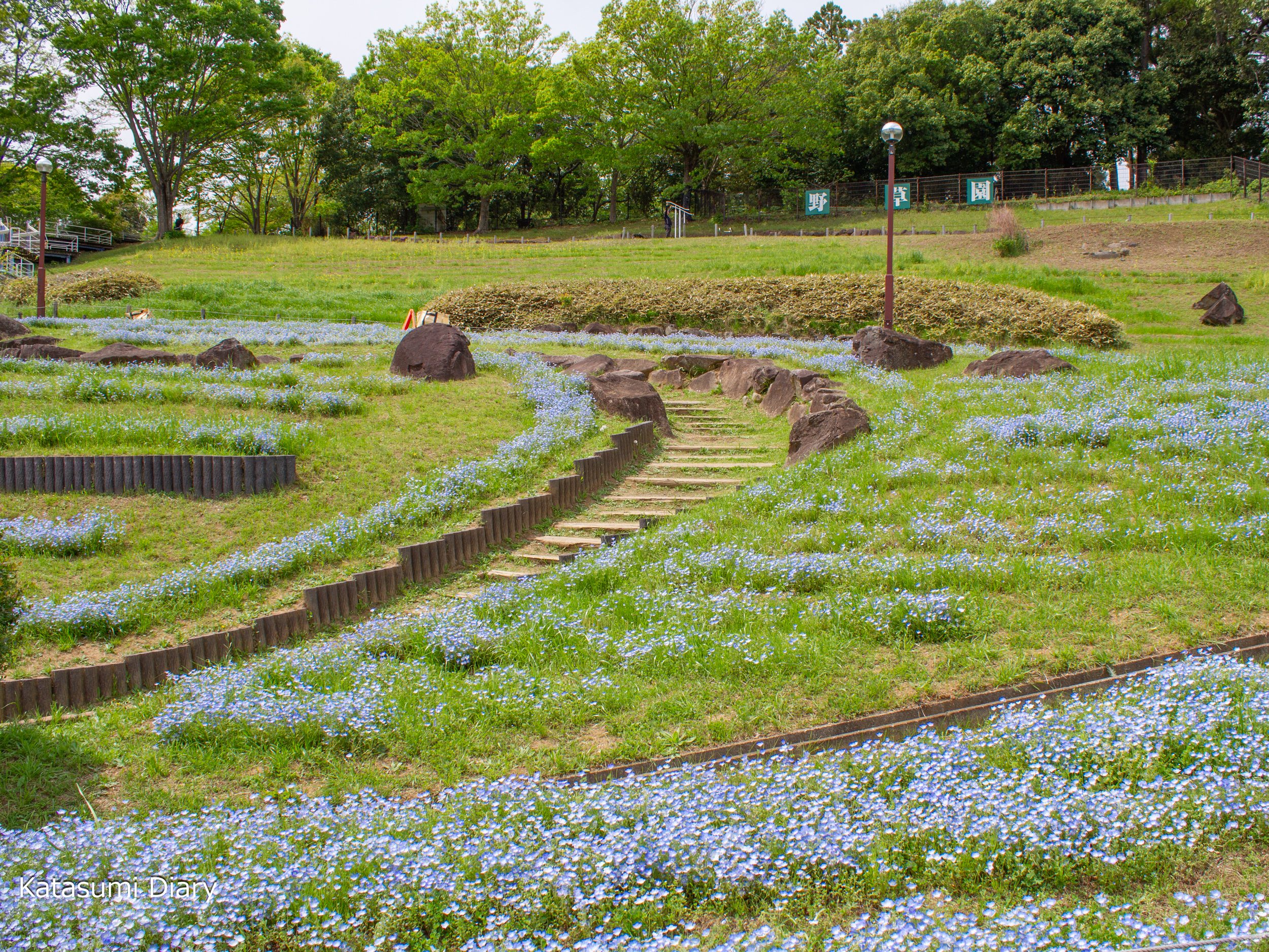 今回のカタスミ日記は、2026年4月17日現在の荻野運動公園のネモフィラの開花状況をお届けいたしましたが、いかがでしたでしょうか。