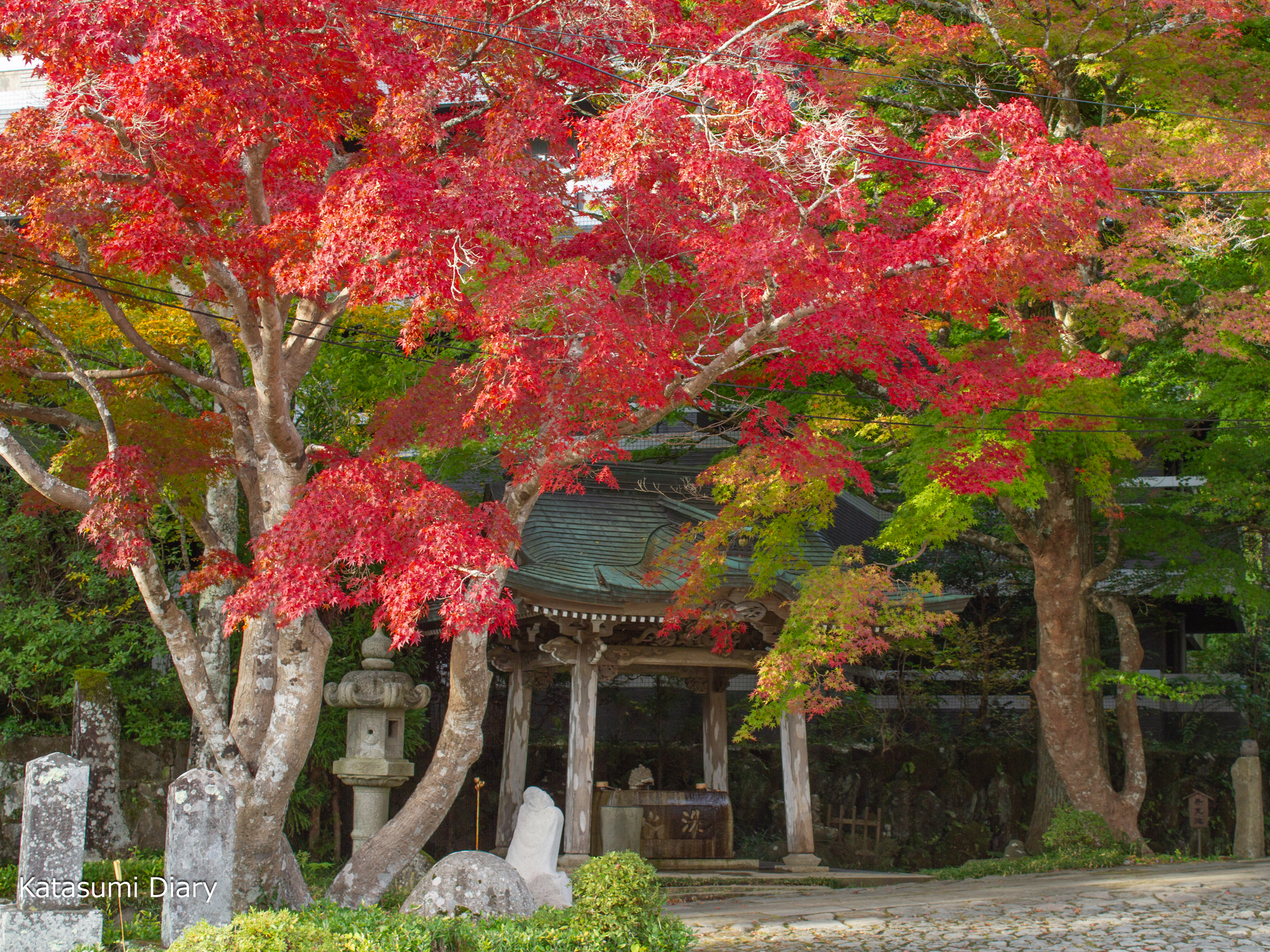 こちらは本堂のすぐ脇で、もみじが見頃を迎えております。