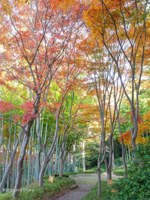 また竹林の傍のもみじの広場でも赤く色付いてまいりました。