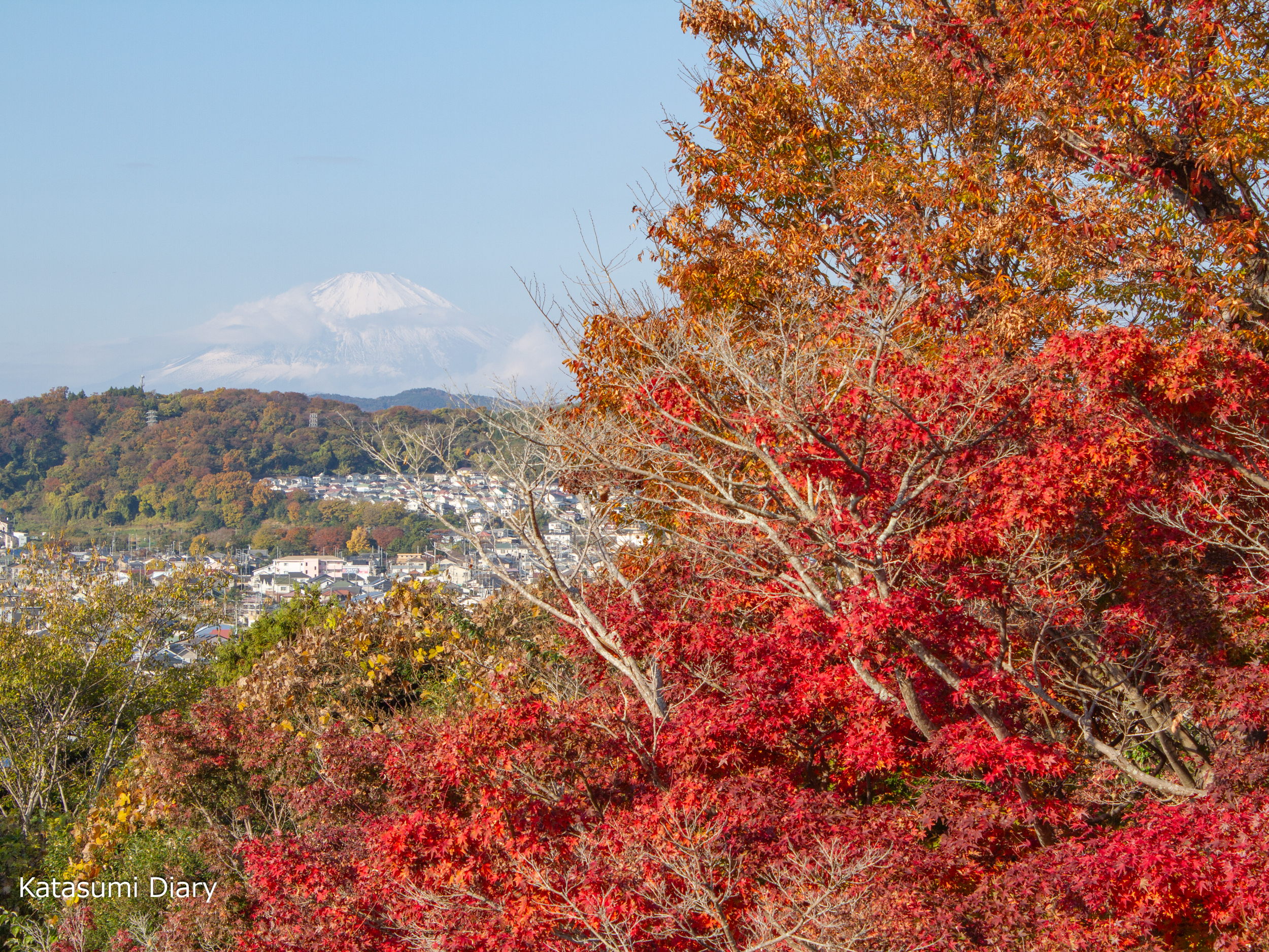 不動池の紅葉を楽しみました後は、富士山と相模湾を望むことができます展望台に向かいます。