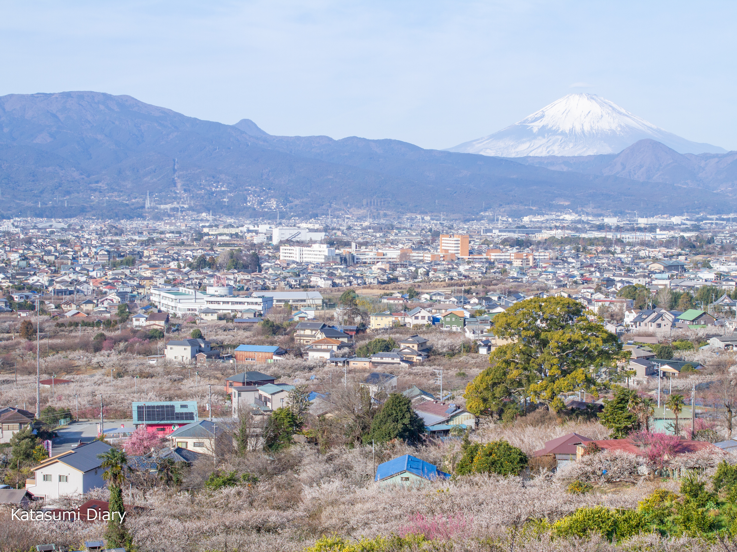 また、丘陵地の上の曽我山中腹道路からは、曽我梅林と富士山を一望することができますので、余裕がございましたら中腹道路の散策も楽しみたいところかと思われます。