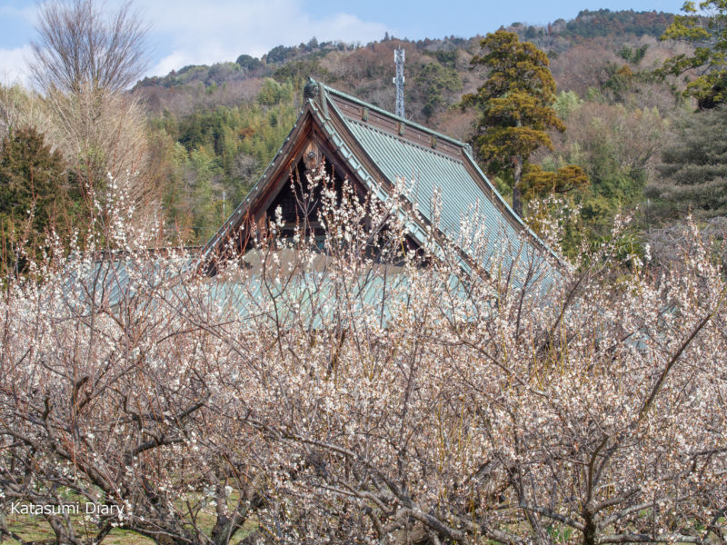 梅林越しの本堂。