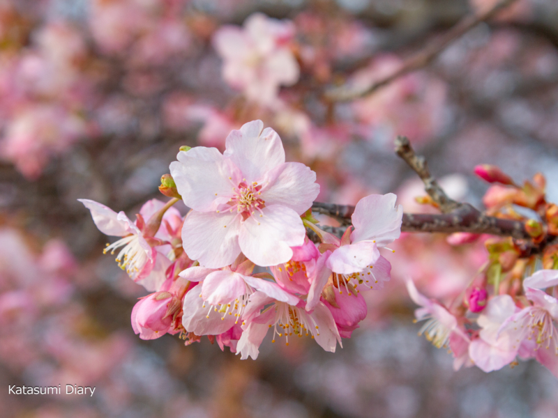 季節の花の開花状況や紅葉の色づき見頃状況をタイムリーにお届けする「花だより」のコーナー。今回のカタスミ日記は、2026年2月20日現在の小出川沿いの河津桜並木の開花状況をお届けいたします。